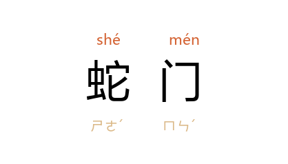 ⒈ 门名。 战国 春申君 在 吴 地所造。 唐 陆广微 《吴地记》:“蛇门 南面有陆无水, 春申君 造以御 越 军,在巳地以属蛇,因号 蛇门。
