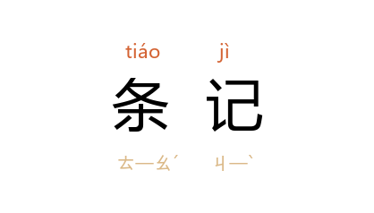 ⒉ 明 清 官印的一种,亦称钤记,为长方形,未入流者用之,入流者则用方印。 清 县丞、主簿、驿丞、州县儒学及各省驻防旗营佐领、屯庄、守边门官等均用条记。铜质直纽,文体及大小各有定制,由礼部铸印局铸发。参阅《清会典·礼部·铸印局》、 清 俞樾 《茶香室续钞·印关防条记》。