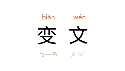 ⒈ 唐代兴起的一种说唱文学,多用韵文和散文交错组成,内容原为佛经故事,后来范围扩大,包括历史故事、民间传说等。如敦煌石窟里发现的《大目乾连冥间救母变文》、《伍子胥变文》等。