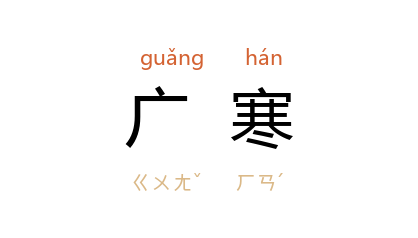 梁丘子 注:“广寒,北方仙宫之名。又云,山名,亦曰 广霞。《洞真经》云:冬至之日,月伏於 广寒 之宫,其时育养月魄於 广寒 之池,天人採青华之林条,以拂日月光也。”