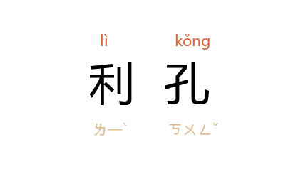 引《管子·国蓄》:“利出於一孔者,其国无敌;出二孔者,其兵不詘;出三孔者,不可以举兵;出四孔者,其国必亡。”汉 桓宽 《盐铁论·本议》:“故平準、均输所以平万物而便百姓,非开利孔为民罪梯者也。”宋 王安石 《兼并》诗:“利孔至百出,小人私闔开。”梁启超 《为国会期限问题敬告国人》一:“夫彼辈本以官职为传舍,以国家为利孔。”