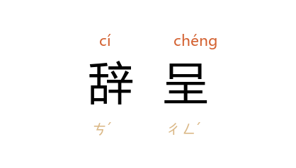 引鲁迅 《书信集·致许寿裳》:“前见校刊,知兄已递辞呈。”靳以 《乱离》:“我看透了,回来之后,我又写了一个辞呈。”