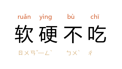 例如:「他固执己见,软硬不吃,任谁也无法改变他的心意。」