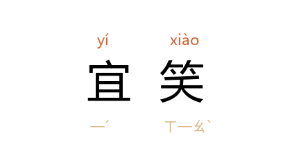 引《楚辞·九歌·山鬼》:“既含睇兮又宜笑,子慕予兮善窈窕。”汉 司马相如 《上林赋》:“皓齿粲烂,宜笑的皪。”三国 魏 曹植 《七启》:“红颜宜笑,睇眄流光。”隋 江总 《东飞伯劳歌》:“年时二八新红脸,宜笑宜歌羞更歛。”元 张昱 《西湖漫兴》诗:“玉局 当年为写真, 西施 宜笑復宜顰。”