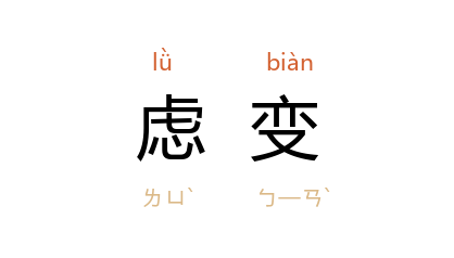 引《关尹子·七釜》:“天下之理,是或化为非,非或化为是;恩或化为讎,讎或化为恩。是以圣人居常虑变。”三国 魏 刘劭 《人物志·英雄》:“聪能谋始,明能见机,而勇不能行,可以循常,而不可以虑变。”