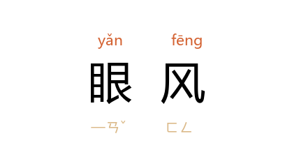 引《何典》第七回:“﹝ 臭花娘 ﹞忽见 活死人 半推半就,甚是着急,连忙丢了个眼风。”茅盾 《第一个半天的工作》:“﹝ 张女士 ﹞望那边窗口斜抛了一个眼风。”郑振铎 《取火者的逮捕》三:“那火光……又似乎有意的彼此争向 宙士 和他的从者投射讥笑的眼风。”