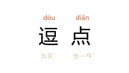 ⒈ 一种标点符号。用以分开句内各语或表示语气的停顿,符号为「,」。也作「点号」、「逗号」。