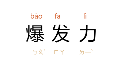 ⒈ 体育运动中指在短暂间突然产生的力量,如起跑、起跳、投掷、抽球时使出的力量。