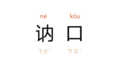 引《史记·李将军列传》:“广 訥口少言,与人居则画地为军陈,射阔狭以饮。”《后汉书·儒林传下·何休》:“休 为人质朴訥口,而雅有心思。”《晋书·朱伺传》:“伺 有武勇,而訥口,不知书。”