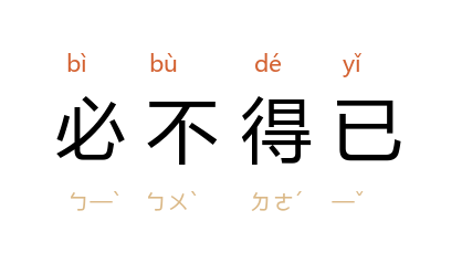 引《论语·颜渊》:「必不得已而去,于斯三者何先?」唐·权德舆〈世祖封不义侯议〉:「布之威怀,革其非心,必不得已,则仗大顺以讨之,出师以征之。」