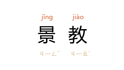 ⒈ 基督教的支派。五世纪初 叙利亚 人 聂斯托利 所创。 唐贞观 九年(公元635年), 波斯 人 阿罗本 带其经典入 长安,太宗 诏准建寺传教。初称 波斯 经教,后称景教,其寺称 波斯寺,天宝 时改名 大秦寺。唐武宗 会昌 五年(公元845年)禁。