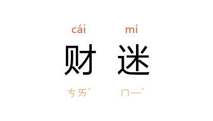 引赵树理 《三里湾·老五园》:“糊涂涂 是财迷。”刘亚舟 《男婚女嫁》第二七章:“这对老财迷……凑在灯下一捆捆、一张张在数 程济仁 给的彩礼钱。”