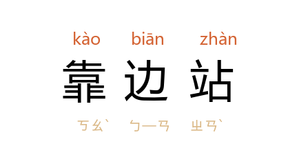 例如:「这事还轮不到他来管,他啊──最好靠 边站!」