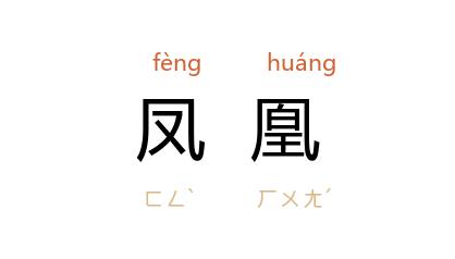 ⒈ 传说中的百鸟之王,雄的称为「凤」,雌的称为「凰」,为象征祥瑞的鸟。