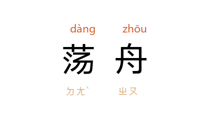⒈ 以手推舟,行于陆地。《论语·宪问》:“南宫适问于孔子曰:'羿善射,奡荡舟,俱不得其死然。'”何晏集解引孔安国曰:“奡多力,能陆地行舟。”邢昺疏:“荡,训推也,能陆地推舟而行。”一说,以舟船冲锋陷阵。见清顾炎武《日知录·奡荡舟》。