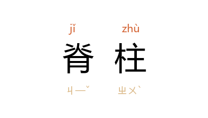 ⒈ 人和脊椎动物背部的主要支架。俗称脊梁骨。人的脊柱由三十三个椎骨构成,形状像柱子,在背部的中央,中间有一条椎管,内有脊髓。脊柱分为颈、胸、腰、骶、尾五个部分。