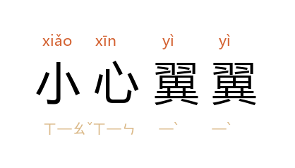 ⒈ 非常谨慎,不敢疏忽。也作「翼翼小心」。