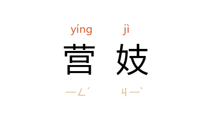引《汉武外史》:“汉武 始置营妓,以待军士之无妻者。”后蜀 何光远 《鉴诫录·蜀才妇》:“吴 越 饶营妓, 燕 赵 多美姝, 宋 产歌姬, 蜀 出才妇。”清 俞正燮 《癸巳类稿·除乐户丐户籍及女乐考附古事》:“《齐书·前废帝纪》云,夜开后阁,与左右淫宴,诸营署皆军市也。 唐 则曰营伎,亦曰官使妇人。”