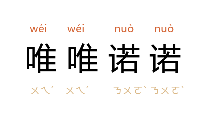 ⒈ 后因以“唯唯诺诺”谓卑恭顺从。