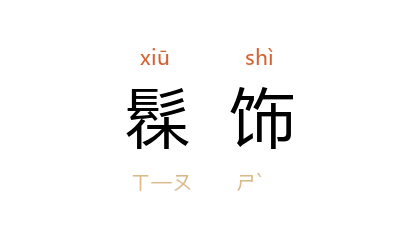 ⒈ 亦作“髤饰”。亦作“髤餙”。犹漆饰。 明 黄成 撰有《髤饰録》一书,叙述各种漆器之作法。