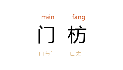 引《景德传灯录·道溥禅师》:“问:‘初心后学,近入丛林方便门中,乞师指示。’师敲门枋。”沙汀 《堰沟边》:“她依靠在门枋上,直到她唠唠叨叨抱怨起来,这才被 陶青山 发觉。”克非 《春潮急》二七:“那对联没贴在门枋上,而是贴在两扇门板上的。大约门枋太窄小了吧?”