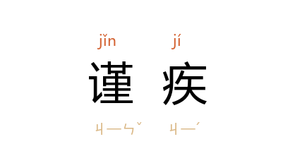 引语本《论语·述而》:“子之所慎:齐、战、疾。”孔颖达 疏:“君子敬身安体,若偶婴疾病,则慎其药齐以治之。”明 吴宽 《谨疾箴》:“孔子 谨疾与齐、战同,匪疾是谨,惟德之崇。”清 唐甄 《潜书·厚本》:“使人恃医而不谨疾,以至於丧其身者,必子之言也夫。”