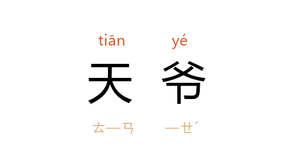 ⒈ 旧时以天有意志,主宰一切,俗呼为“天爷”。