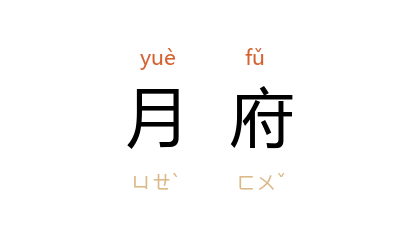 引南朝 梁 萧统 《十二月启·林锺六月》:“藏形月府,遁跡冰床。”唐 唐彦谦 《叙别》诗:“蟠拏对月吸深杯,月府清虚玉兔吼。”元 方夔 《感兴》诗:“月府有奇木,根榦饱清露。”清 洪昇 《长生殿·闻乐》:“此即太阴月府,人间所传 广寒宫 者是也。”