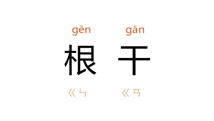 引《韩非子·扬权》:“参之以比物,伍之以合虚。根干不革,则动泄不失矣。”《三辅黄图·汉宫》:“今谓玉树,根干盘峙,三二百年木也。”《诗·小雅·白华序》“以妾为妻,以孽代宗” 唐 孔颖达 疏:“以适子比根干,庶子比支孽,故孽支庶也。”郭沫若 《十批判书·儒家八派的批判》:“但假如仅因枝节的后添或移接,而否定根干的不古,那却未免太早计了。”