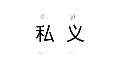 引《商君书·画策》:“国乱者,民多私义;兵弱者,民多私勇。”《韩非子·饰邪》:“夫令必行,禁必止,人主之公义也。必行其私,信於朋友,不可为赏劝,不可为罪沮,人臣之私义也。”《战国策·赵策二》:“子用私道者家必乱,臣用私义者国必危。”