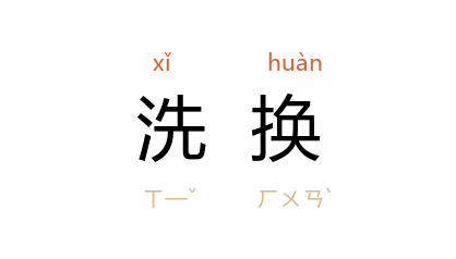 ⒈ 妇女月经来时,需洗身换衣,故称月经为「洗换」。