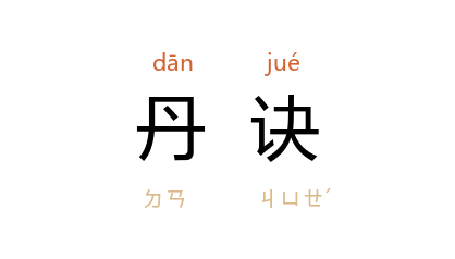 引晋 干宝 《搜神记》卷一:“有人入 焦山 七年, 老君 与之木钻,使穿一盘石……四十年,石穿,遂得神仙丹诀。”唐 陆龟蒙 《寄茅山何道士》诗:“终身持玉舄,丹诀未应传。”《歧路灯》第七五回:“山主有所不知,大凡天地间,只有两等异授,一曰剑术,一曰丹诀。”