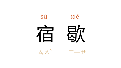 引《京本通俗小说·菩萨蛮》:「便是郡王府里唤去半日,未晚就回,又不在府中宿歇。」《水浒传·第二回》:「当时只得权且欢天喜地相留在家宿歇,每日酒食管待。」