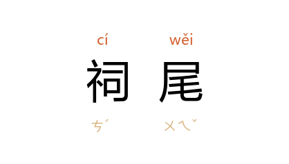 ⒈ 即鸱尾。古代宫殿正屋脊两端的装饰构件,以瓦为之。以其形似猛禽鸱之尾,因以为名。 北齐 颜之推 《颜氏家训·书证》谓 张敞 撰《东宫旧事》何以呼鸱尾为祠尾,因 张敞 为 吴 人,呼祠祀为鸱祀,故以祠代鸱。一说,即蚩尾,鱼尾形屋饰。 唐 苏鹗 《苏氏演义》卷上谓:蚩,海兽;蚩尾,水之精,能辟火灾,可置之堂殿。