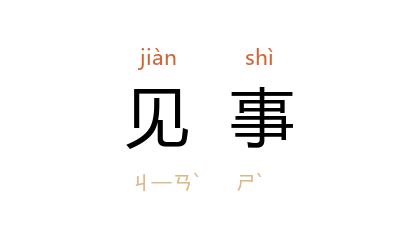 引《史记·范雎蔡泽列传》:“吾闻 穰侯 智士也,其见事迟。”《晋书·唐彬传》:“顺从者谓为见事,直言者谓之触迕。”宋 孔平仲 《续世说·假谲》:“崔日知 见事敏速。每朝廷有事,转祸为福,以取富贵。”