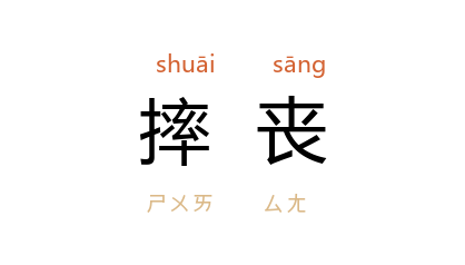 ⒈ 旧时举行丧礼时,灵柩一出门,孝子要把一个瓦盆摔破,然后灵柩起杠,称为「摔丧」。也作「摔盆」。