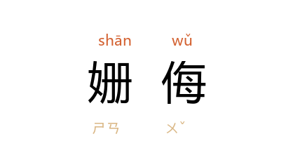 引宋 罗大经 《鹤林玉露》卷三:“余谓优人之姗侮君子,诚可罪也。”《明史·阉党传·焦芳》:“马文升 为尚书, 芳 輒加姗侮,阴结言官,使抨击素所不快及在己上者。”清 钮琇 《觚賸·樵隐》:“黄九烟 名 周星,性极简傲。或以诗文就见者,非面加姗侮,则哂而置之。”