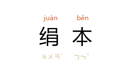 例如:「这两幅山水绢本,画得十分精致。」