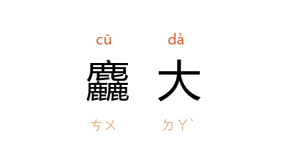 引《后汉书·东夷传·夫馀》:“其人麤大彊勇而谨厚,不为寇钞。”《尔雅·释木》“诸虑山櫐” 晋 郭璞 注:“今 江 东呼櫐为藤,似葛而麤大。”