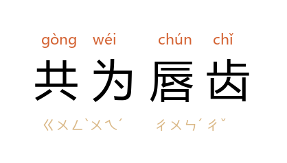 ⒈ 比喻二者关系密切,有如嘴唇与牙齿。也作「共相唇齿」。