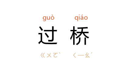 引欧阳山 《三家巷》十七:“区细 和 区卓 捧着 区桃 的灵牌,到门口外面去‘过桥’。桥是竹枝扎成的,上面糊着金色的纸和银色的纸,一共有两座,一座叫金桥,一座叫银桥。正位师姑宣读了手卷,吹鼓手奏起‘三皈依’的乐章来,师姑们齐声念唱。每唱一节,正位师姑用手卷在桥上一指,灵牌就往上挪动一级。到了桥顶,又往下降;过了金桥,又过银桥, 周炳 一直看到过完了桥,才告辞回家。”