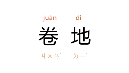 从地面席卷而过。形容势头迅猛。 唐 韩愈 《双鸟》诗:“春风卷地起,百鸟皆飘浮。”