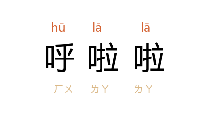 引《红楼梦》第八九回:“﹝ 寳玉 ﹞忽听得纸窗呼喇喇一派风声。”贺敬之 丁毅 等《白毛女》第三幕第三场:“耳听得流水呼啦啦的响。”《花城》1981年第1期:“鸟群呼啦啦飞起。”