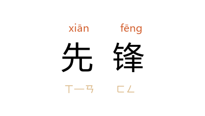 ⒉ 战时率领先头部队迎敌的将领;泛指起先导作用者。