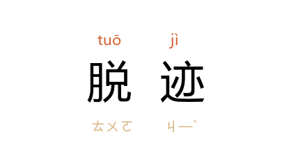 引晋 陆机 《汉高祖功臣颂》:“脱迹违难,披榛来洎。”唐 元稹 《寄吴士矩端公五十韵》:“亦从酒仙去,便被书魔惑;脱跡壮士场,甘心竖儒域。”清 顾炎武 《将去关中别中尉存杠于慈恩寺塔下》诗:“低头从灶养,脱跡溷林僧。”
