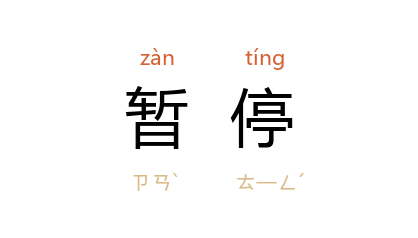 ⒉ 体育运动术语。某些运动项目,如篮球、排球、手球等,在比赛中,如出现意外情况,或教练员须重新布置战术时,可按规则通过裁判员暂时中断比赛,叫做暂停。