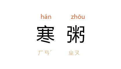 引《周礼·天官·浆人》“浆人掌共王之六饮:水、浆、醴、凉、医、酏” 汉 郑玄 注:“凉,今寒粥,若糗饭杂水也。”《释名·释饮食》:“寒粥,末稻米投寒水中育育然也。”唐 许浑 《陪少师李相国崔宾客宴居守狄仆射池亭》诗:“暖醅松叶嫩,寒粥杏花香。”