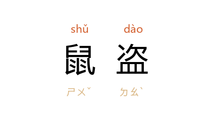 引《红楼梦》第一回:“偏值近来水旱不收,鼠盗蜂起,无非抢田夺地,民不安生,因此官兵剿捕难以安身。”清 黄遵宪 《述怀再呈霭人樵野丈》诗:“鼠盗忽窃发, 犬戎 敢相逼。”
