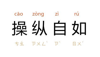 ⒈ 操作某件事情能得心应手。《老残游记》第一回,“若遇风平浪静的时候,他驾驶的情状,亦有操纵自如之妙。”