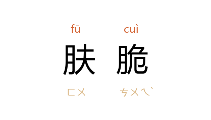 引北齐 颜之推 《颜氏家训·涉务》:“及 侯景 之乱,肤脆骨柔不堪行步,体羸气弱不耐寒暑,坐死仓猝者,往往而然。”宋 叶适 《沉元城墓志铭》:“於是高下之疑,诚伪之杂,荑颖将为干实,肤脆将为坚成,譬之物焉,春种之,不待秋而穫也。”